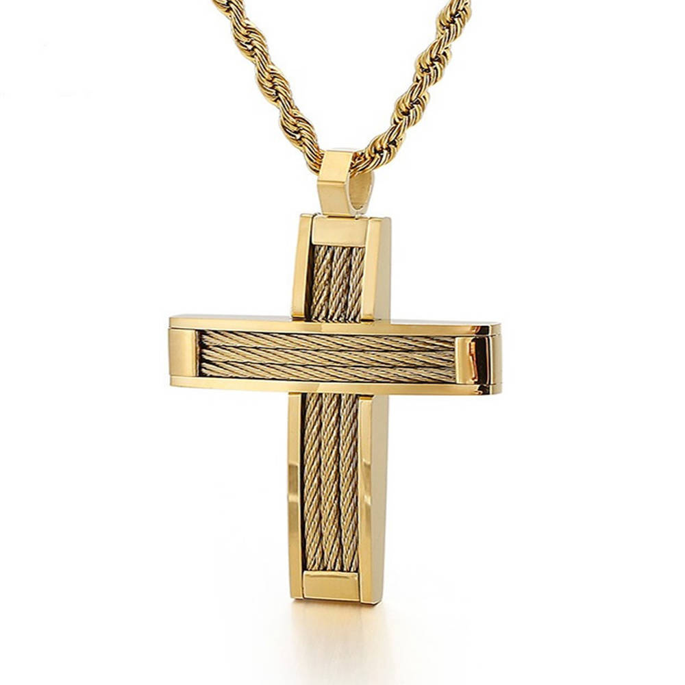 Złota Zawieszka Krzyż ze Stali Szlachetnej