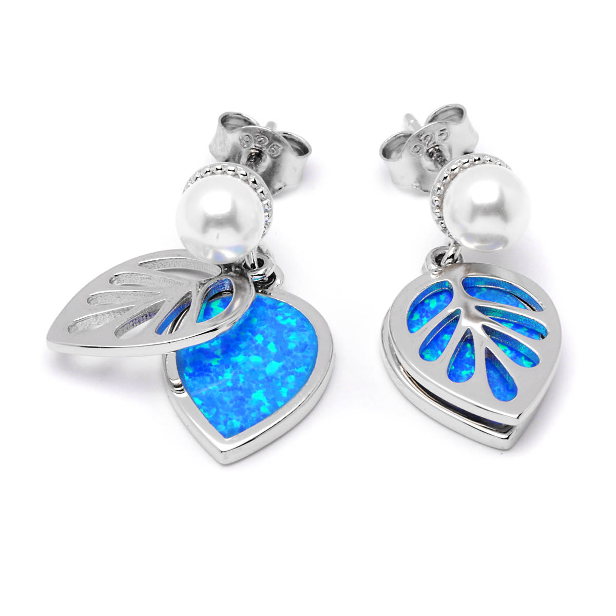 Srebrne Kolczyki Listki z Opalem i Perłami