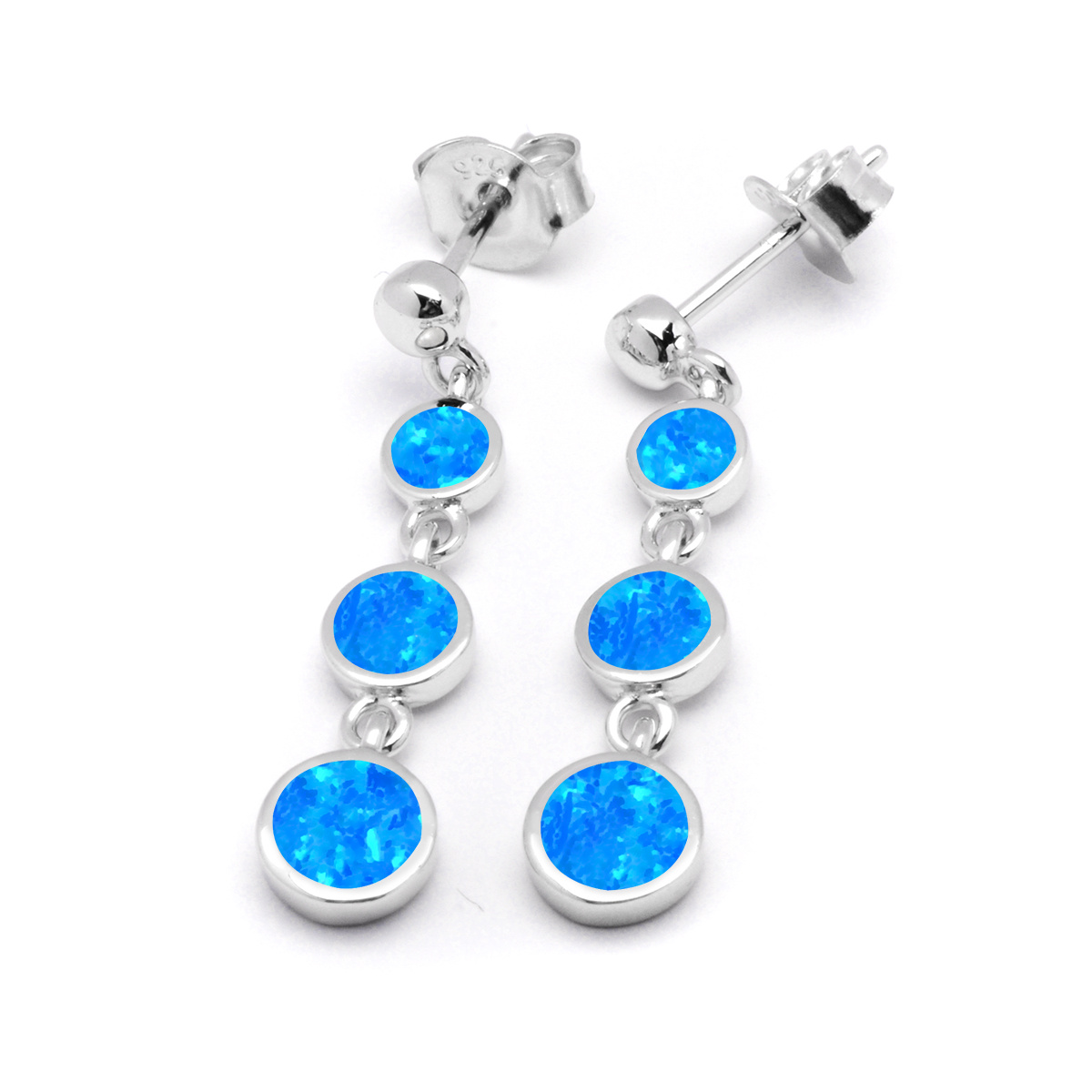 Srebrne Kolczyki Kółka z Niebieskim Opalem