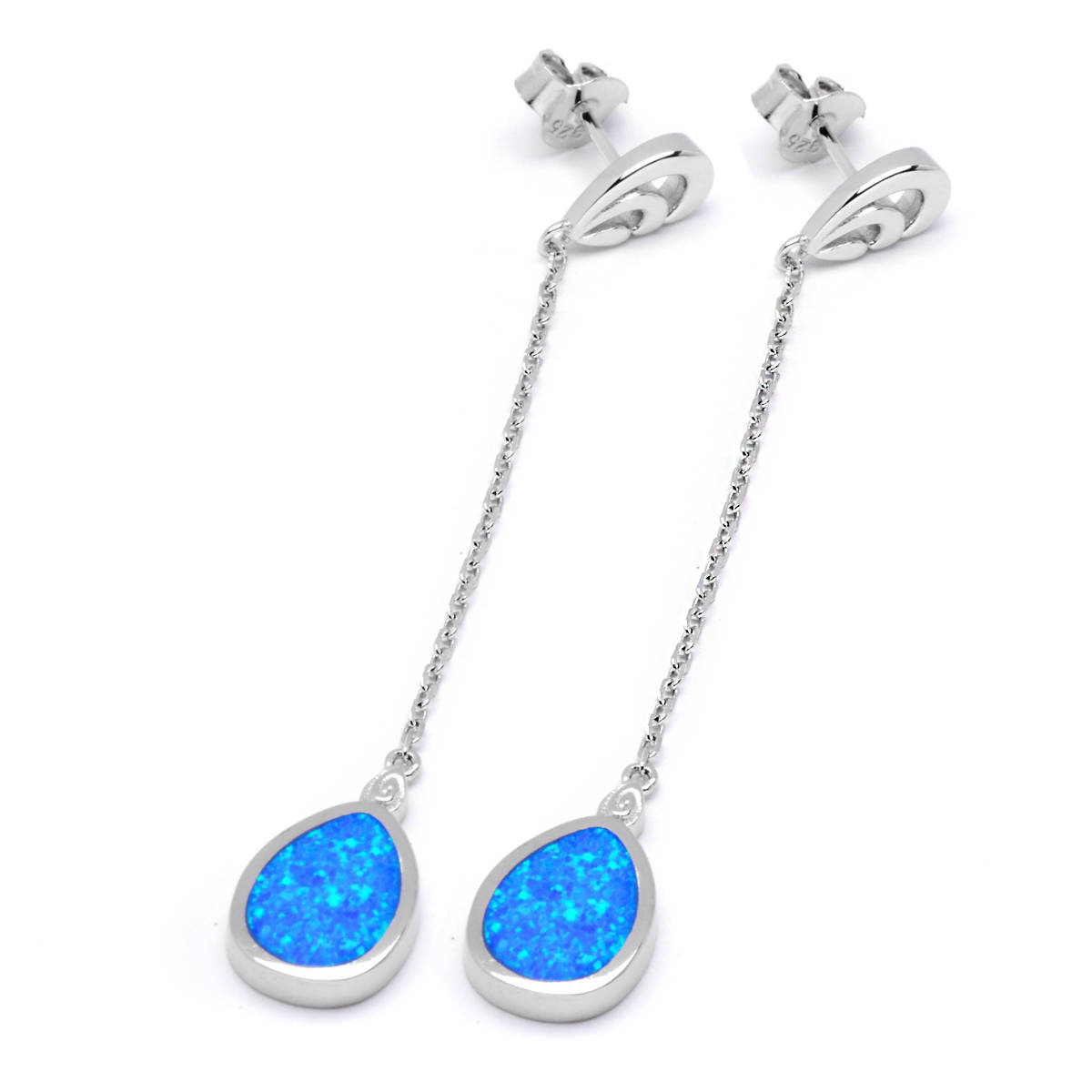 Srebrne Kolczyki na Łańcuszku z Niebieskim Opalem