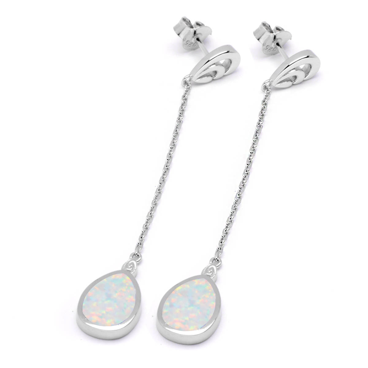 Srebrne Kolczyki na Łańcuszku z Białym Opalem
