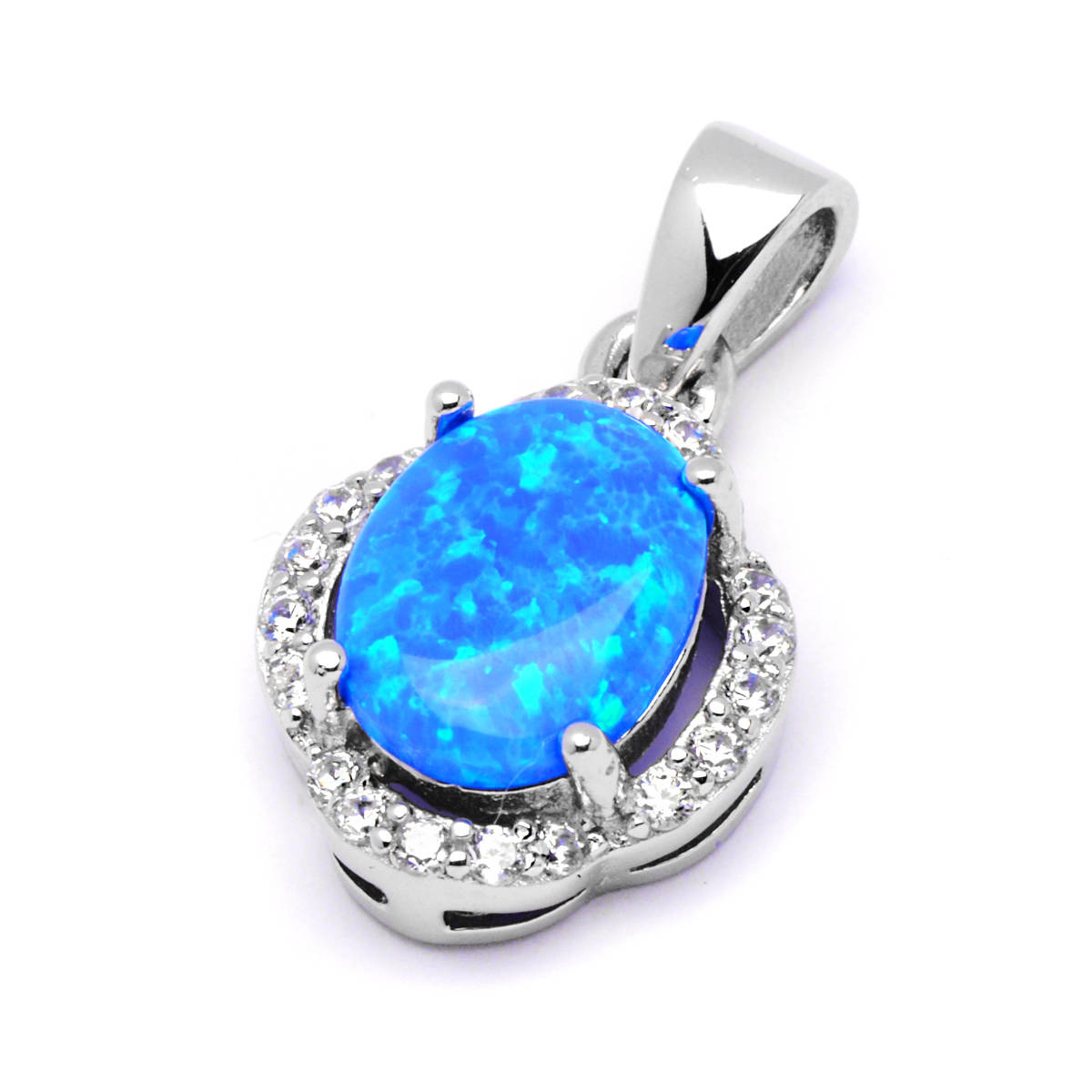 Srebrna Zawieszka z Niebieskim Opalem i Cyrkoniami
