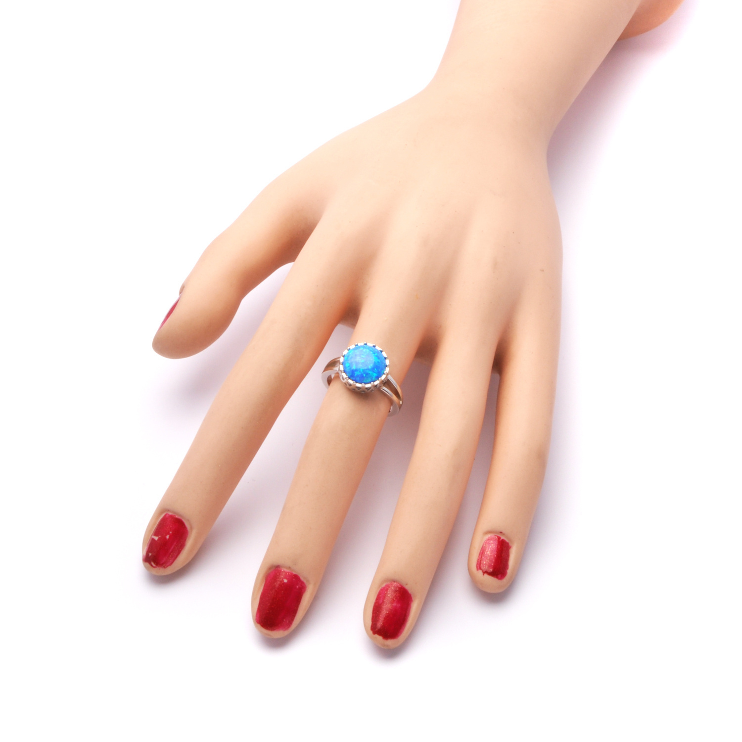 Srebrny Pierścionek z Niebieskim Okrągłym Opalem