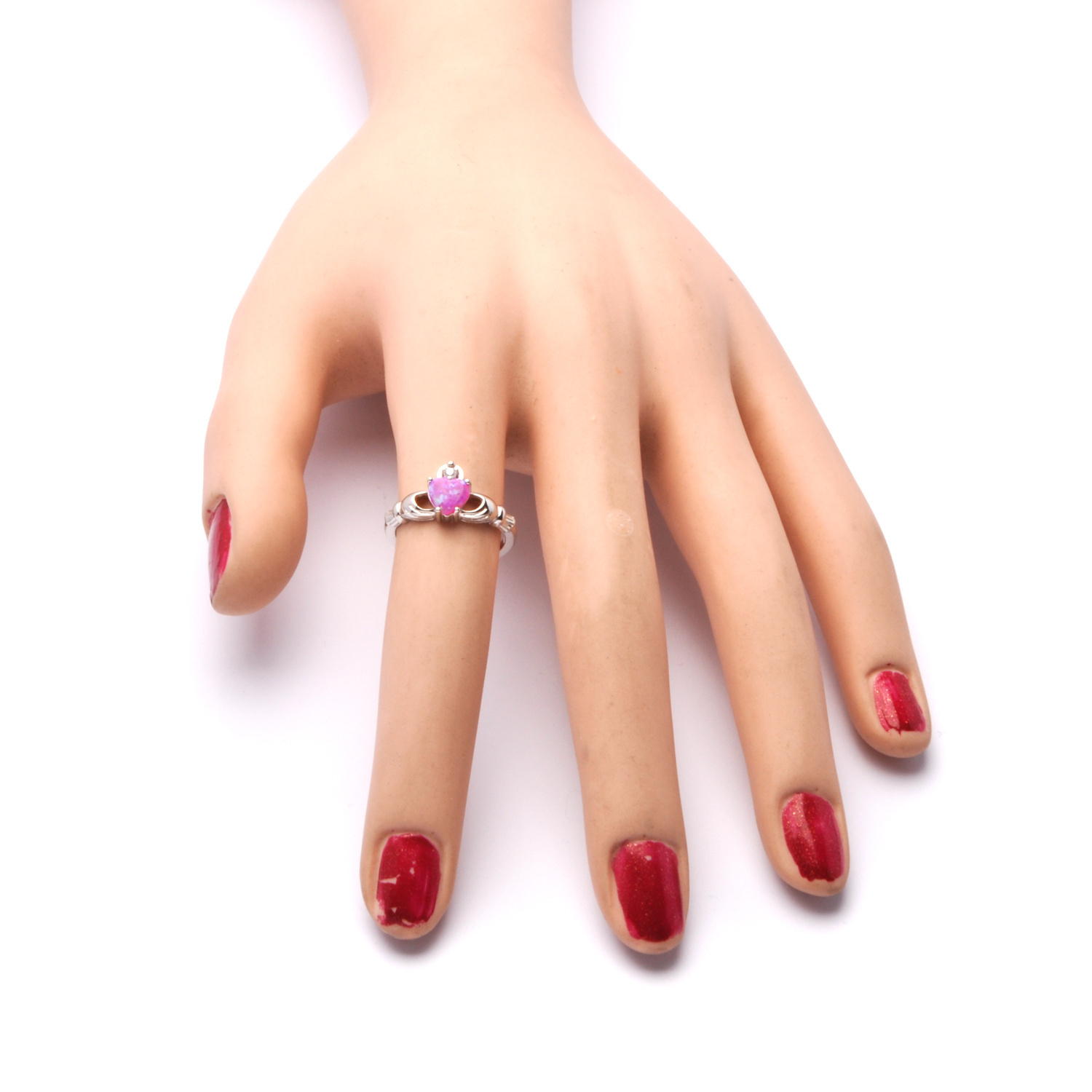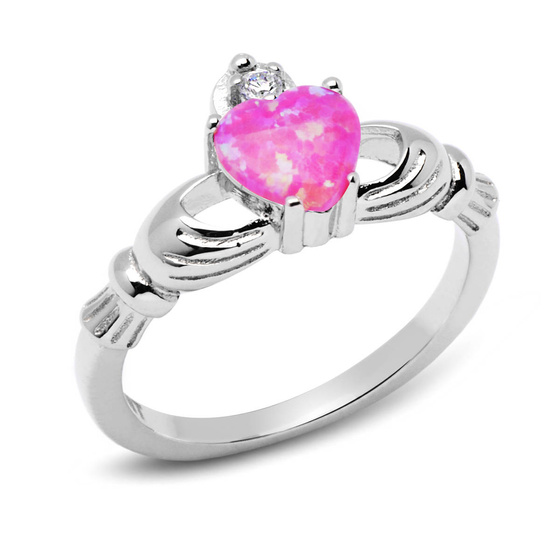 Srebrny Pierścionek Różowe Serce z Rękami