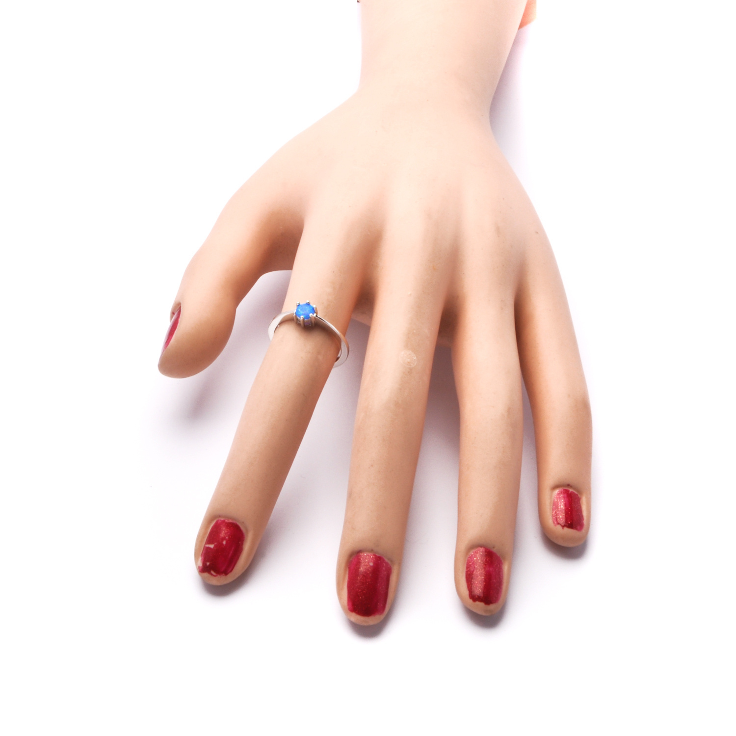 Srebrny Pierścionek z Okragłym Niebieskim Opalem