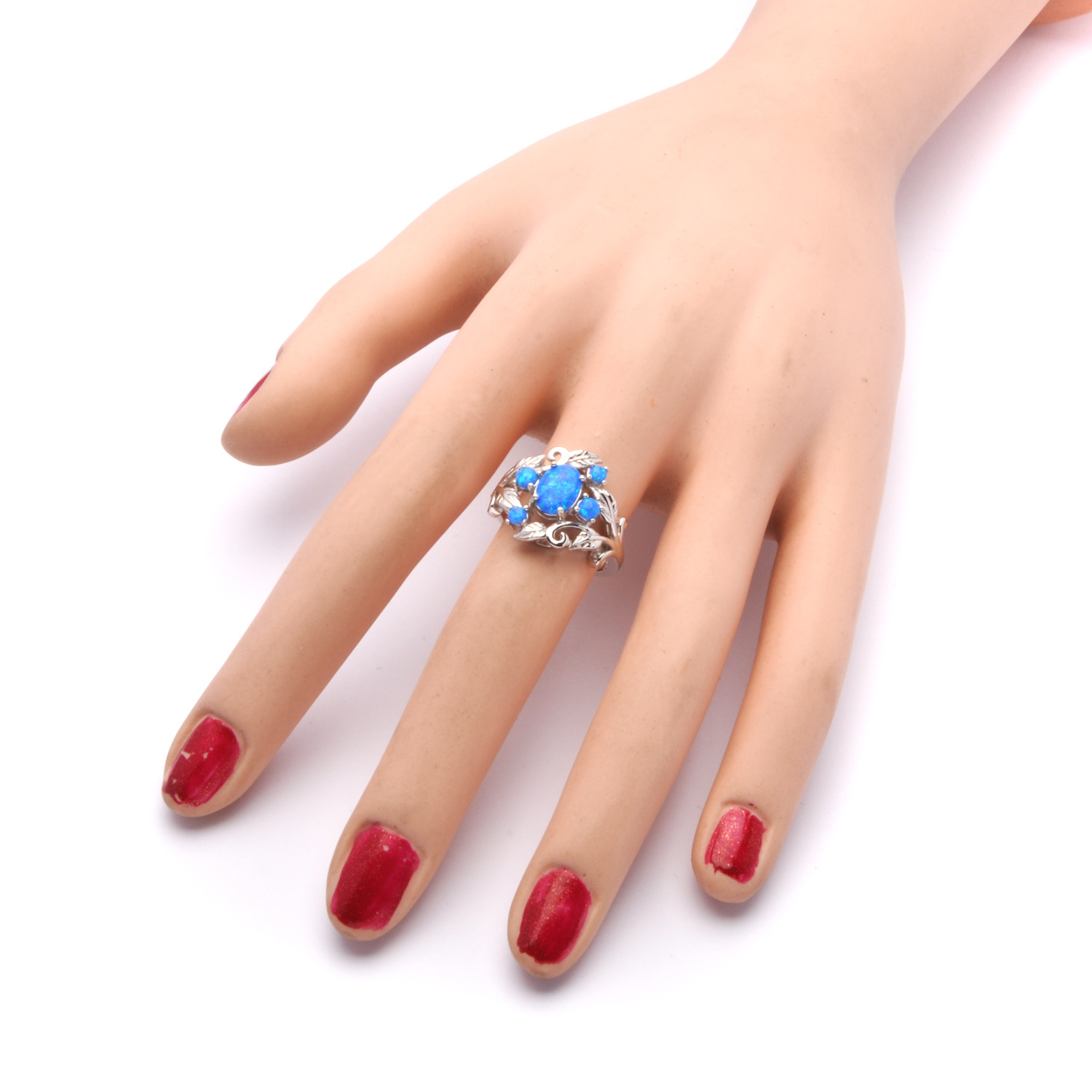 Srebrny Pierścionek Kwiat z Niebieskim Opalem