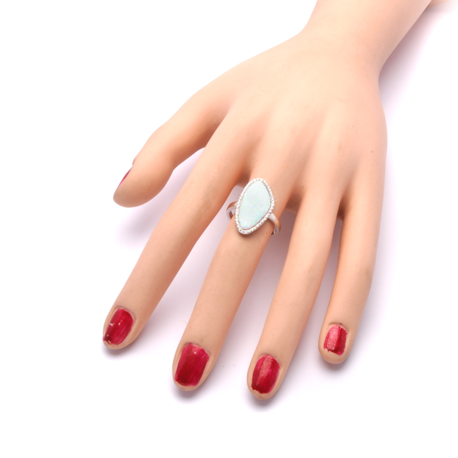 Srebrny Szeroki Pierścionek z Opalem i Cyrkoniami