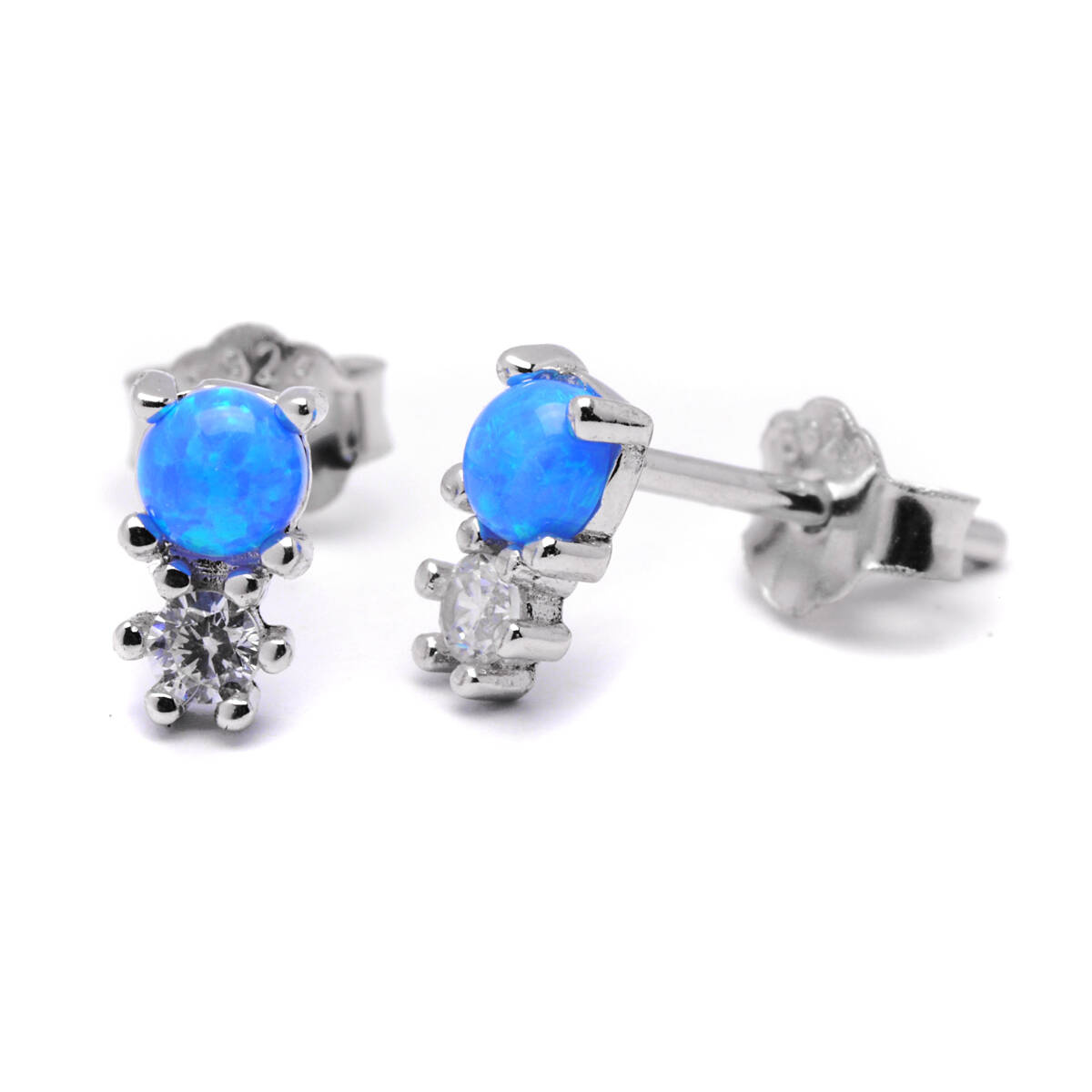 Srebrne Kolczyki z Niebieskim Opalem i Cyrkoniami