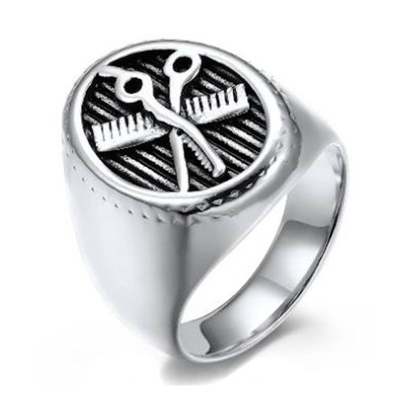 Sygnet ze Stali Szlachetnej Nożyczki i Grzebień