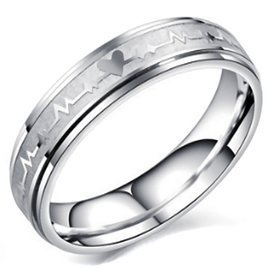 Obrączka Motyw Wykresu EKG Serca Stal Szlachetna