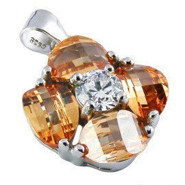 Srebrny Wisiorek Kwiat Pomarańczowe Kamienie