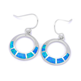 Srebrne Kolczyki Koła z Niebieskim Opalem