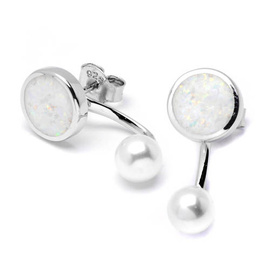 Srebrne Kolczyki z Perłami i Białym Opalem