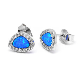 Srebrne Kolczyki z Niebieskim Opalem i Cyrkoniami