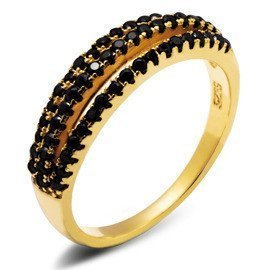 Pierścionek Srebrny Złoty z Czarnymi Cyrkoniami