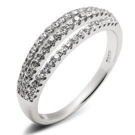 Pierścionek Srebrny Trzy Rzędy Białych Cyrkoni