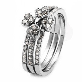 Potrójny Pierścionek Srebrny Pozłacany Koniczynka