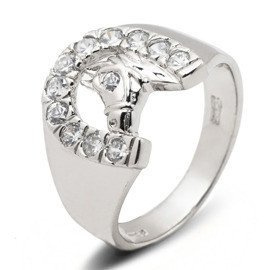 Srebrna Obrączka Koń Wysadzana Białymi Cyrkoniami