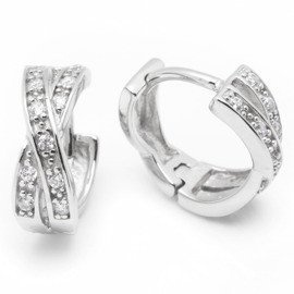 Srebrne Kolczyki Przeplatane Białe Cyrkonie