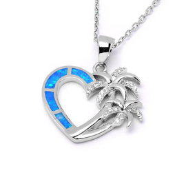 Srebrny Naszyjnik Serce z Niebieskim Opalem