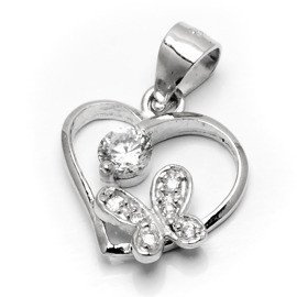 Zawieszka Srebrna Serce z Motylkiem Białe Cyrkonie
