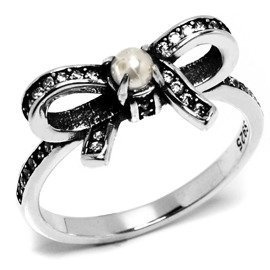 Srebrny Pierścionek Kokardka z Perłą i Cyrkoniami