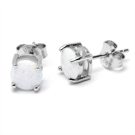Srebrne Okrągłe Kolczyki z Białym Opalem
