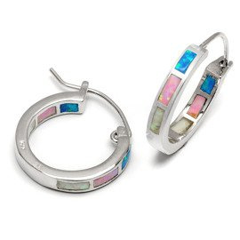 Srebrne Kolczyki Okrągłe z Kolorowymi Opalami