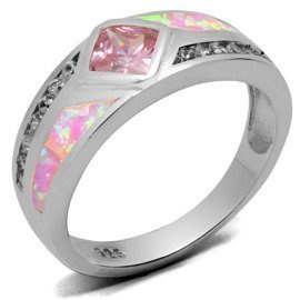 Srebrna Obrączka z Różowym Opalem i Cyrkoniami