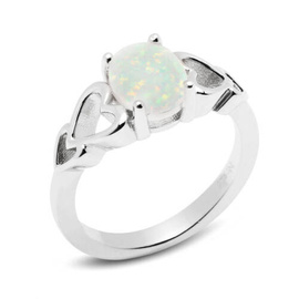 Pierścionek Srebrny z Białym Owalnym Opalem