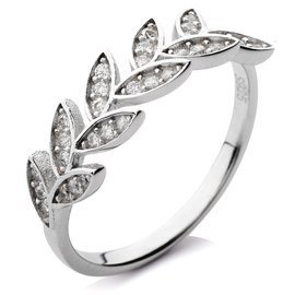 Srerbna Obrączka Liść Wysadzany Cyrkoniami