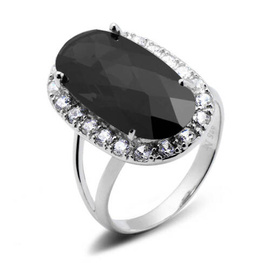 Srebrny Pierścionek z Dużym Czarnym Kamieniem