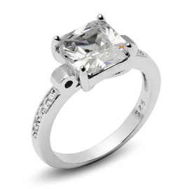 Srebrny Pieścionek z Kwadratową Bezbarwną Cyrkonią