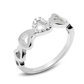 Pierścionek Srebrny Serce Wysadzane Cyrkoniami