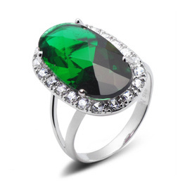 Srebrny Pierścionek z Dużym Zielonym Kamieniem
