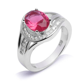 Srebrny Pierścionek z Rubinową Cyrkonią