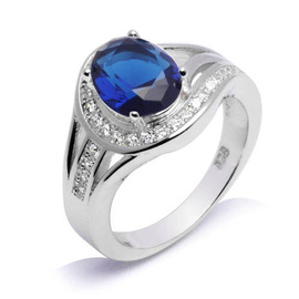 Srebrny Pierścionek z Szafirową Cyrkonią