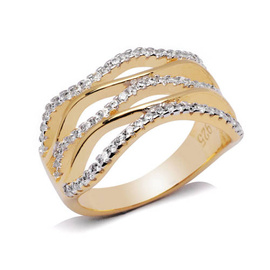 Złota Szeroka Obrączka Srebrna z Cyrkoniami