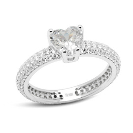 Pierścionek Srebrny Serce Wysadzane Cyrkoniami
