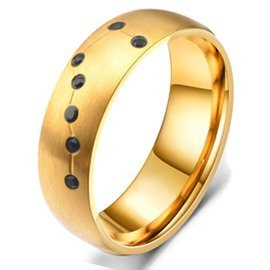 Złota Obrączka ze Stali z Czarnymi Kamieniami