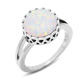 Srebrny Pierścionek z Białym Okrągłym Opalem