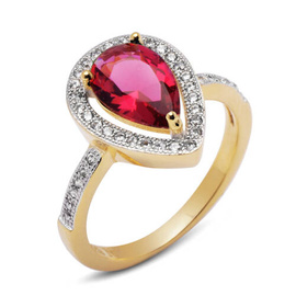 Srebrny Pieścionek Pozłacany z Rubinowym Kamieniem