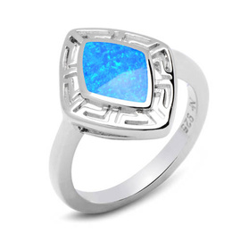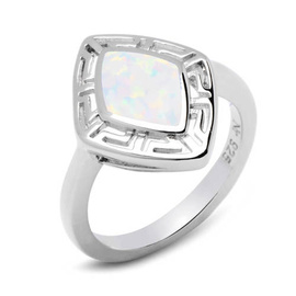 Srebrny Pierścionek Kształt Karo z Białym Opalem