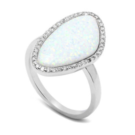 Srebrny Szeroki Pierścionek z Opalem i Cyrkoniami