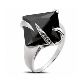 Pierścionek Srebrny z Dużą Czarną Cyrkonią