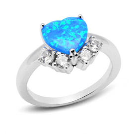 Srebrny Pierścionek Serce z Opalem i Cyrkoniami