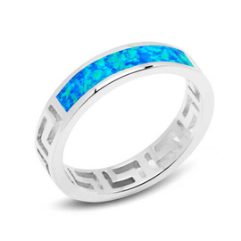 Srebrna Obrączka z Niebieskim Opalem Wzór Grecki