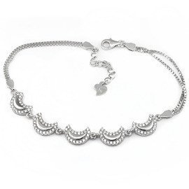 Srebrna Bransoletka Księżyce Białe Cyrkonie