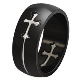 Czarna Obrączka Krzyż Stal Chirurgiczna