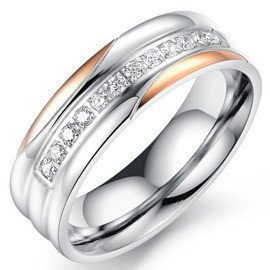 Szeroka Obrączka ze Złotymi Ozdobami i Cyrkoniami